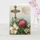 Une charmante croix, un oeuf élaboré et un message saisonnier ornent cette charmante carte de Pâques, basée sur un accueil victorien de la fin des années 1800.