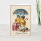 Carte de voeux Retro / Vintage de Pâques. Adorable couple pipi poussant leur bébé dans une jolie voiture! Joyeuses Pâques !