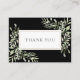 Des cartes de remerciement d'affaires modernes avec d'élégants feuilles d'aquarelle verte qui encadrent votre message de remerciement sur un arrière - plan noir chic. Vous pouvez ajouter vos coordonnées au contraire.
