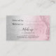 Elégante et élégante carte de référence pour maquilleur avec texture de marbre parties scintillant rose faux or rose, texture argentée et police de calligraphie élégante.