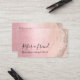 Elégante et élégante carte de référence pour maquilleur avec imitation rose en cuivre parties scintillant en marbre texture, rose or texture et élégante police calligraphie.