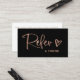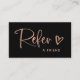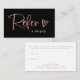 Ces cartes d'aiguillage d'affaires noires, branchées et chic, sont dotées d'un script manuscrit en or rose et d'un joli coeur griffé pour un look décontracté et simple. Le dossier contient plusieurs champs que vous pouvez customiser avec votre magasin de détail ou les informations de votre société.