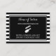 Récompensez les clients lorsqu'ils orientent un ami avec ces larges bandes horizontales noires et blanches à la mode pour récompenser les cartes de visite. Personnalisez-vous en ajoutant le nom de votre salon, votre site Web et une offre spéciale à ce motif rayé noir et blanc contemporain.