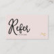 Elegant Gold Ciseaux Coiffeur Salon Blush Pink Referral Card est parfait pour n'importe quel salon de coiffure, salon de coiffure ou salon de beauté. Cette élégante carte de référence professionnelle est conçue avec un look moderne et élégant et dispose de magnifiques ciseaux dorés avec un arrière - plan rose vif. Idée de carte de référence pour la coiffure pour commencer à promouvoir votre salon ou votre entreprise avec élégance!