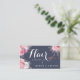 Carte de référence moderne et élégante pour coiffeurs avec ciseaux d'or rose en faux cuivre, roses roses et blanches et police calligraphie élégante.
