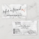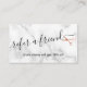 Carte de référence moderne et élégante pour coiffeurs avec ciseaux d'or rose en faux cuivre, arrière - plan en marbre blanc et police de calligraphie élégante.
