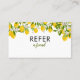 Elégante carte de référence citrons verdure. Parfait pour un large éventail de professions : spas, fleuristes, soins de beauté, spécialistes de soins de la peau, consultants en coiffure et beauté, stylistes, maquilleurs, esthéticiennes et spas pour n'en citer que quelques-uns ! Personnalisez en ajoutant vos coordonnées au verso avec vos informations d'offre spéciale. Conçu par Thisisnotme©