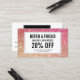 Coordonner avec les cils avec le modèle de carte de visite Parties scintillant rouge/bronze d'ici 1201h. Mettez à jour le texte de promotion pour votre offre désirée. Générer plus de ventes et de visites en encourageant vos clients à recommander leurs amis pour un service à rabais ou un produit gratuit. Idéal pour les salons d'extension de lash, les bars de foufe, les artistes de maquillage et plus encore. © 1201AM CREATIVE