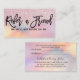 C'est la carte de réduction parfaite Référez-vous à un ami pour une entreprise branchée, élégante et moderne. Ce design présente une typographie chic, girly et joli noir sur une parties scintillant rose glamour et girly faux imprimé avec arrière - plan dégradé sombre rose, pêche, bleu et violet. Ces cartes ajouteront cette touche personnelle et professionnelle à votre annonce d'affaires et de carrière. ***REMARQUE IMPORTANTE DE CONCEPTION : Pour toute demande de conception personnalisée, comme les demandes de produit assorties, les changements de couleur, les changements de placement ou toute autre demande de modification, veuillez cliquer sur le bouton "CONTACTER" ou envoyer un courriel au concepteur directement à lafemme.art@gmail.com. Vous pouvez même lui envoyer par courriel une demande pour un design entièrement personnalisé et nouveau.