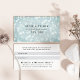 Les cartes de référence chic comprennent votre offre de référence superposée sur un arrière - plan de feux de livres bleu glace hivernale, avec des termes de référence, des informations de contact et de l'espace pour les noms de vos clients sur le côté inverse.
