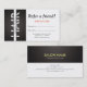 Référez un carte de visite ami. Simple minimaliste texture lin blanc et noir arrière - plan Liste de cheveux / maquillage Artiste carte de visite Modèles. Un Carte de visite professionnel moderne et personnalisable. Idéal pour Hair Stylist, maquilleur, consultant, conseiller, avocat, comptable, avocat, conseiller et professionnels de l'entreprise. Facile à customiser avec vos propres textes et images !