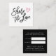 Encouragez les clients à recommander des amis avec ces cartes de référence chic carré en noir et blanc avec une pop de rose fuchsia. Parfait pour les salons, les techniciens en ongles, les coiffeurs, les maquilleurs et les boutiques, notre design moderne et simple "partage l'amour" en lettres manuscrites noires accentuées d'un coeur dessiné rose. Personnalisez l'envers avec vos conditions de référence, votre nom d'entreprise, votre emplacement et vos coordonnées. Inclut l'espace pour les noms du référent et du nouveau client.