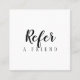 Une simple carte de parrainage noir et blanc avec un script élégant. Personnalisez avec vos coordonnées et votre offre spéciale au verso. Conçu par Thisisnotme©