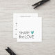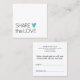 Carte de référence simple carré noir et blanc pour professionnels de la beauté. Design épuré simple avec icône turquoise coeur, entièrement personnalisable.