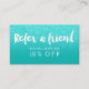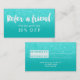 Référez-vous un ami avec cette carte moderne et élégante de référence de maquillage avec la typographie moderne de brosse de style de lettrage de main dans le blanc sur un ombre à la mode et élégant de parties scintillantes d'aqua de faux sur l'aqua simple de turquoise.