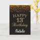 Carte de Parties scintillant Black and Gold 13th Birthday avec nom personnalisé. Pour plus de personnalisation, cliquez sur le bouton "Customiser" et utilisez notre outil de conception pour modifier ce modèle.