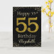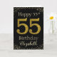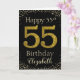 Joyeux Anniversaire avec simulateur de parties scintillant dorée numéro 55 sur une couleur arrière - plan solide et encadré par des faux diamants et des strass. Joyeux anniversaire et nom des destinataires en caractères blanc cassé. Personnalisez avec un nom ou un message.