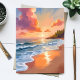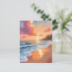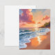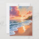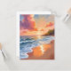 Carte de peinture à l'aquarelle du coucher de soleil sur la plage avec la mer à l'heure dorée