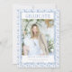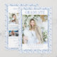 Célébrez le nouveau diplômé de l'école avec une carte d'annonce de remise de diplôme en photo grandmillenial DIY personnalisable. Modifiez votre carte d'annonce de remise de diplôme en photo de grand-mère côtière à la chinoiserie bleue et votre invitation à la fête de remise de diplôme avec tous les détails de la fête de remise de diplôme.