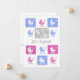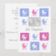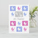 Une carte de photo d'annonce de triplés pour une combinaison de bébés garçons et bébés filles, avec des landaux à l'ancienne en rose et bleu et de la place pour votre propre photo sur le devant. Le verso est prévu pour que vous puissiez le personnaliser avec vos propres détails.