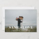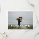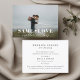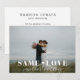 Carte d'annonce de réduction de mariage sur mesure avec un design de typographie moderne "même amour, mariage plus petit" sur une photo de mariage personnalisée.
