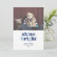 Cette carte de Hanukka amusante comporte les mots shine bright en lettres multicolores avec un espace pour une seule photo. Le dos présente un motif de bandes assorties.