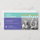 Allumez la menorah et partagez votre joie à Hanoukka. Une carte photo qui met en valeur vos proches couronnés par une menorah de Hanoukka entièrement allumée. Tout le texte est personnalisable et se détache sur des panneaux de pourpre et de sarcelle riches avec un motif de cercle subtil, rehaussé par une étoile de David dans le coin. Disponible en couleurs alternatives avec affranchissement assorti, cartes, autocollants et étiquettes.
