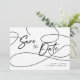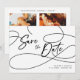 Annoncez à vos proches de réserver la date de votre mariage avec cette carte de Save the Date photo noir et blanc minimaliste moderne avec une calligraphie "Sauver la date" en écriture fantaisie et deux photos personnalisables au verso. Cette carte est parfaite si vous désirez simplicité mélangée à l'élégance.