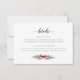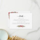 Assurez-vous que vos invités mariages ont toutes les informations importantes avec cette élégante carte de détails hivernaux. Conçu avec une verdure festive d'aquarelle, des baies rouges et un arc rouge de charme, il s'inscrit parfaitement dans le thème des mariages de Noël ou de vacances. Utilisez-le pour fournir des informations sur la réception, les détails de l'hébergement ou toute note spéciale dont vos invités pourraient avoir besoin. Une belle façon de garder votre suite mariage à la fois organisée et festive.