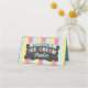 Unique, amusant, coloré glacier salon awning enfants thème crème glacée ou toppings nom marque design. Conçu en rose, jaune et turquoise coloré amusant. Laissez le message en blanc afin que vous puissiez écrire votre propre crème glacée ou garniture. Cette carte peut également servir de carte de place assise. Ajoutez de la singularité à la fête d'anniversaire de vos petits avec cette carte unique de fête d'anniversaire de la crème glacée. Nous avons une large sélection d'objets d'anniversaire assortis pour ce thème de fête d'anniversaire de salon de crème glacée. Vous pouvez changer le nom d'une carte de lieu d'anniversaire personnalisée unique.