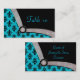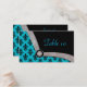 Carte De Placement Aqua Blue & Black Damask Gem Sparkle