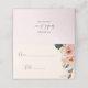 Cette carte de table pliée moderne et bohème pour une douche de mariée thème floral rose et pêche et champagne est parfaite pour quiconque souhaite organiser une douche de mariée de célébration pour porter un toast à la future mariée.