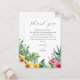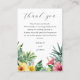 Une élégante aquarelle de fleurs tropicales avec mariage verdoyant merci carte de réception, personnalisée avec un message spécial et les noms de la mariée et du marié. Conçu par Thisisnotme©