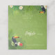 Réception de mariage colorée, cartes de table avec un toucan audacieux au milieu des fleurs d'hibiscus aquarelle et des feuilles de palmiers. L'arrière - plan répétitif, en feuilles de palmier, dans les tons vert ressort, est facultatif et peut être changé en blanc si préféré. Ces cartes tropicales sont parfaites pour l'été, la plage et les mariages tropicaux, anniversaires et autres événements. Recherchez ID577 pour voir les produits correspondants.