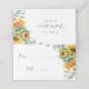 Ceci est une carte de placement moderne et rustique sur le thème des tournesols pour une baby shower. En utilisant un design de fleurs de tournesol campagnardes et de feuilles d'eucalyptus, modifiez le texte selon vos besoins en utilisant le modèle fourni et célébrez les futures noces de la mariée dans un style bohème rustique.