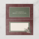 Voici notre carte de lieu pliée pour mariage d'hiver enchanteresse, qui fait partie d'une suite design où l'élégance intemporelle rencontre la beauté de la saison. Le riche arrière - plan bordeaux, astucieusement affligé de doux accents blancs, donne un ton captivant à votre journée spéciale. Embrassez l'esprit de l'hiver avec un cadre vert sauge foncé bordé de crème douce. Ces couleurs riches mettent en valeur l'endroit pour le nom du client. Le dos affiche les noms de la mariée et du marié et la date du mariage. Ce design d'hiver d'inspiration merveilleuse saisit l'essence de la saison et invitation vos invités à célébrer votre amour dans un cadre qui respire la grâce naturelle et le charme festif. Avec cette invitation, vous êtes sûr de préparer le terrain pour une célébration remplie d'amour et de joie. Laissez-vous séduire par la magie de l'hiver et laissez votre mariage être le reflet de la beauté de cette saison. Il fait partie de la suite Rustic Winter Berries & Pine Burgundy mariage. Créé par Simply Farmhouse Press.