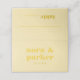 Une typographie chic et audacieuse prend le gâteau avec ces cartes mariages modernes. Une amusante surprise se dessine comme le côté inférieur présente un jaune lumineux et joyeux, qui coule avec le beurre jaune doux tout au long de l'arrière - plan et du texte.