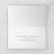 Le design formel présente une image centrale en bordure argentée et blanche représentant "IHS", le symbole catholique traditionnel du Christ, sur une croix d'argent. Le numéro du tableau est affiché en haut à gauche, le nom de l'invité est clairement indiqué au centre. A l'intérieur, vous pouvez voir le verset de la Bible que vous avez choisi.