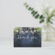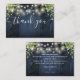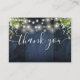 Une élégante cordes lampadaires bois de grange bleu rustique avec verdure mariage merci carte de réception, personnalisée avec un message spécial et les noms de mariée et mariée. Conçu par Thisisnotme©