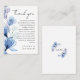 Une élégante carte de remerciement de mariage à fleurs transparentes bleu poussiéreux, personnalisée avec un message spécial et les noms des mariés et leurs initiales monogramme au verso. Conçue par Thisisnotme©