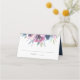 Elégante carte de place/numéro de table à fleurs florales avec un spray et une couronne de fleurs d'aquarelle violette, mauve et bleue avec des feuilles verts conçus pour coordonner avec notre collection de mariages de fleurs de minuit. Ajoutez vos initiales et votre date de mariage à l'arrière des cartes de lieux pour un look personnalisé.