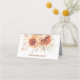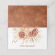 Marque-place moderne de réception de mariage bohème floral avec un arrangement floral orange brûlé avec feuille de palmier. Le dos est une texture de faux foil également dans un orange brûlé profond.
