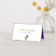 Cette carte élégante et colorée de la place mariage a un bouquet floral d'aquarelle étonnant en haut à gauche, et une image plus petite et similaire en bas à droite. Entre les deux, il y a de l'espace pour écrire dans un nom. Le dos de la carte a votre texte personnalisé en or et en bleu violet assorti. Assurez-vous de voir les produits mariages correspondants, y compris les invitations, dans notre magasin.