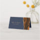 Cette élégante table de mariage moderne réservée carte de place dispose d'une bordure d'aquarelle orange brûlée ornée d'une fausse parties scintillant dorée. L'avant de la carte donne de l'espace pour le nom et le numéro de table du client dans des rectangles dorés sur un arrière - plan bleu marine. Le mot "table" apparaît dans le script d'écriture manuscrite à la mode couleur or. Customisez le verso de la carte avec les noms de la mariée et du marié en écriture manuscrite or et la date du mariage ci-dessous en sans serif font.