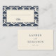 This elegant wedding place card features a nautical theme with a repeating pattern of stylized seashells in deep navy blue set against a cream background. The shells are arranged symmetrically, creating a balanced and sophisticated border around the central blank area, which is perfect for customization. The design includes an elegant cursive script for "table," adding a touch of seaside charm to your event. Ideal for coastal or maritime-themed weddings, this card exudes calmness and refinement, making it a beautiful addition to any celebration by the sea.