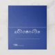 Cette carte de place de nom plié est affichée en blanc de base avec une couleur arrière - plan bleu saphir, avec un accent de défilement brillant losange. Conseil : Utilisez un stylo gel blanc ou un stylo gel métallique. Customisez cet objet ou achetez comme indiqué. Image sous licence