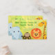 Une scène de jungle amusante avec des arbres, des vignes, et une rivière en tant qu'arrière - plan et un éléphant, singe, lion et girafe regardant sur. Présenté dans une parties scintillant comme cadre. Idéal pour un baby shower garçon ou fille.