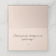 Le design avant présente un arrière - plan rose champagne au numéro de table qui est affiché en haut à gauche dans une police élégante couleur argent. Center affiche une fine ligne couleur argent pour le nom de l'invité. Une saveur délicate est présentée de part et d'autre. Une croix argentée est affichée dans le coin supérieur droit. Les prénoms des couples sont affichés ci-dessous en une impression claire. Le design intérieur consiste en votre message de gratitude au-dessus d'une délicate floraison. L'Arrière - plan est rose champagne. Également disponible en blanc et en coordonnées avec la "Suite Mariage purement catholique".