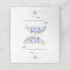 Elégante carte Mariage Delicate Flowers avec un délicat bouquet de fleurs bleu aquarelle, séparateur floral, sur un arrière - plan blanc. Utilisez l'outil Personnaliser pour ajouter vos informations, modifier les polices, les couleurs de la police. Pour les articles correspondants, s'il vous plaît, visitez ma collection de fleurs bleues.