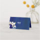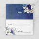 Elégant, romantique et belle aquarelle détails floraux en bleu poussiéreux, cobalt et crème, avec une ligne simple et minimale pour noter les noms des invités et les numéros de table assignés. Le fond est orné d'un beau bouquet avec les mêmes fleurs, des initiales du couple et de la date mariage sur un arrière - plan cobalt et bleu poussiéreux. L'intérieur de la carte de place de table a le même arrière - plan et la même texture que l'arrière, avec un message personnalisable supplémentaire pour vos invités.